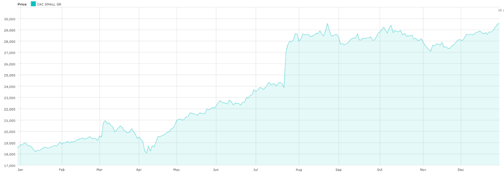 On pourra noter le retour des petites capitalisations françaises : +60% !