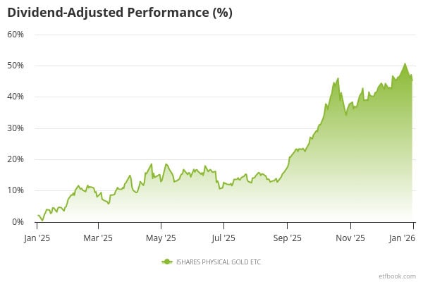 Voici, par exemple, la performance 2025, de l’ETC Physical Gold d’iShares